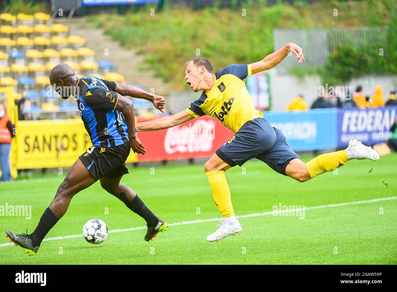 Club S Eder Balanta And Union S Senne Lynen Fight For The Ball During A Soccer Match Between Royal Union Saint Gilloise And Club Brugge Sunday 01 Aug Stock Photo Alamy