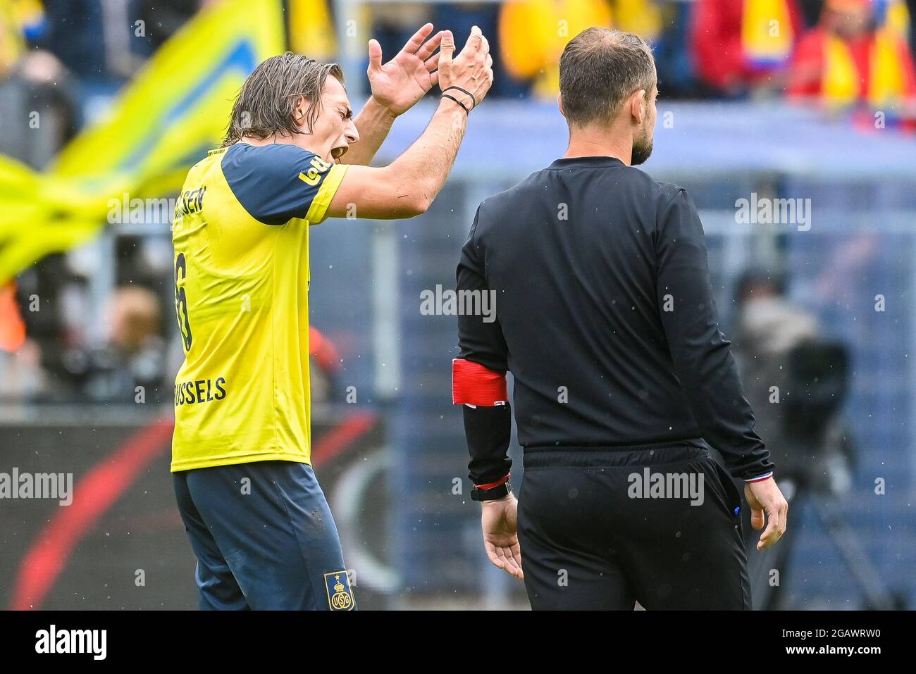 Union S Loic Lapoussin And Union S Deniz Undav React During A Soccer Match Between Royal Union Saint Gilloise And Club Brugge Sunday 01 August 2021 I Stock Photo Alamy